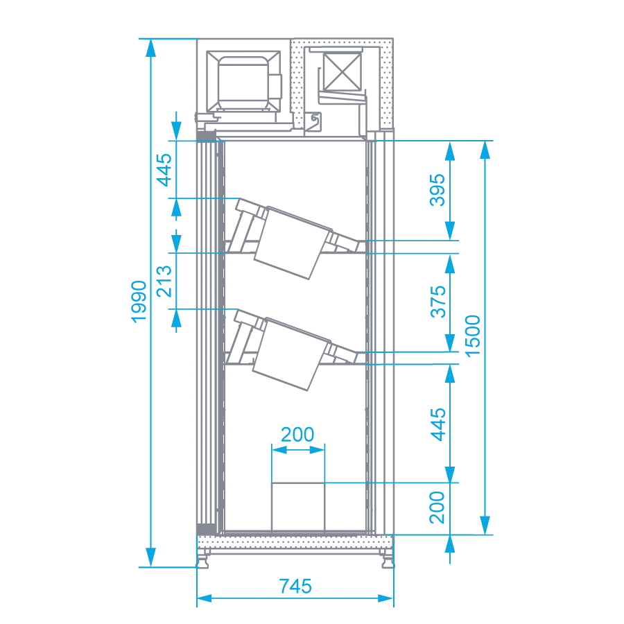 - gravitačné statické spádové chladenie s automatickým odmrazovaním výparníka a odparovaním kondenzátu